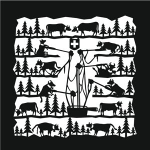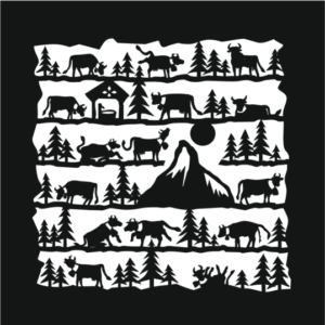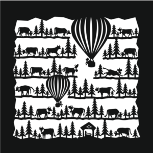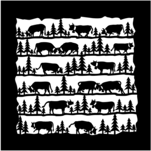 Poyas découpages sur panneau de fibre de bois (MDF) 3 mm. Scènes toutes en originalité aux vaches parfois surprenantes.